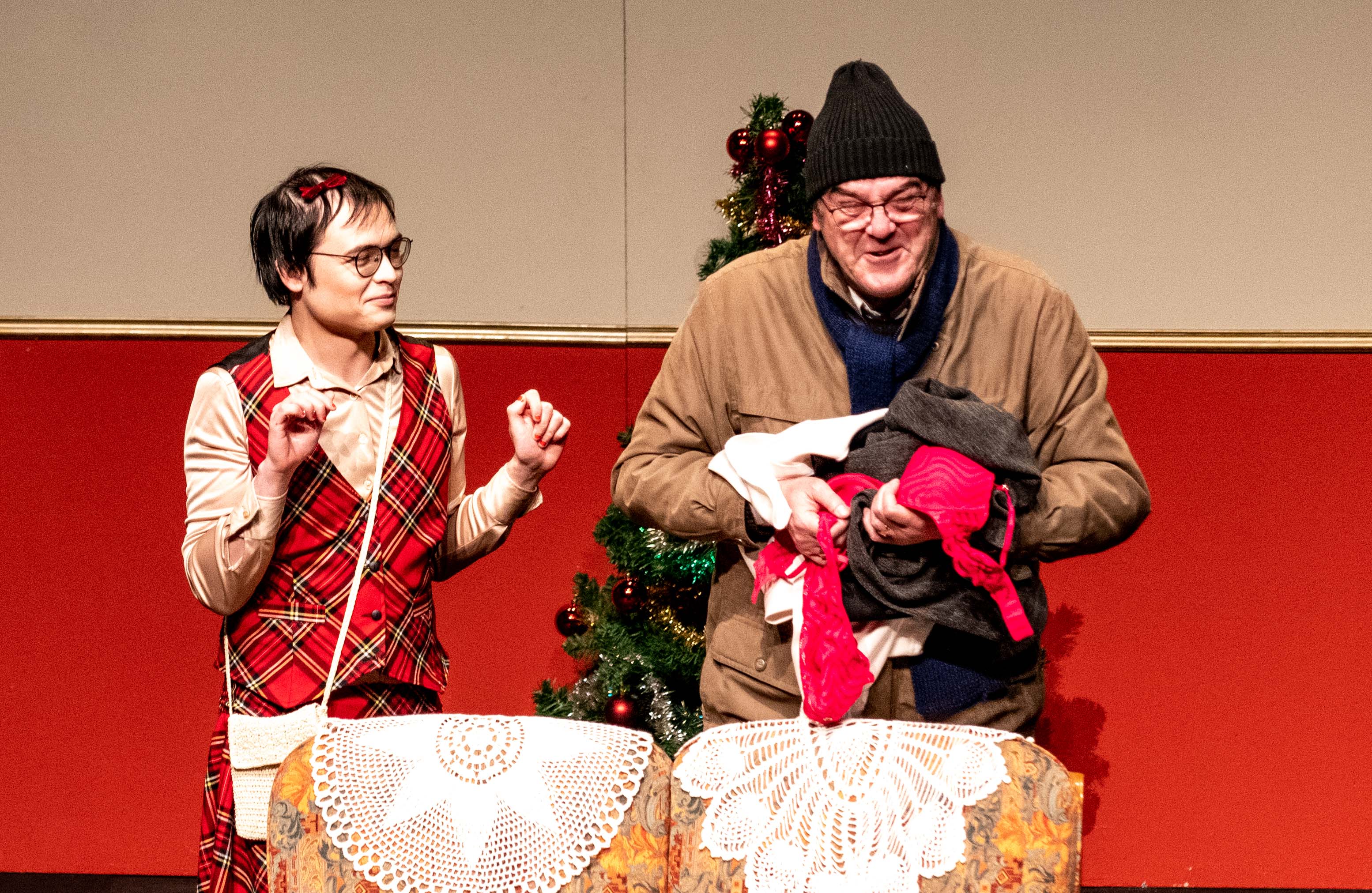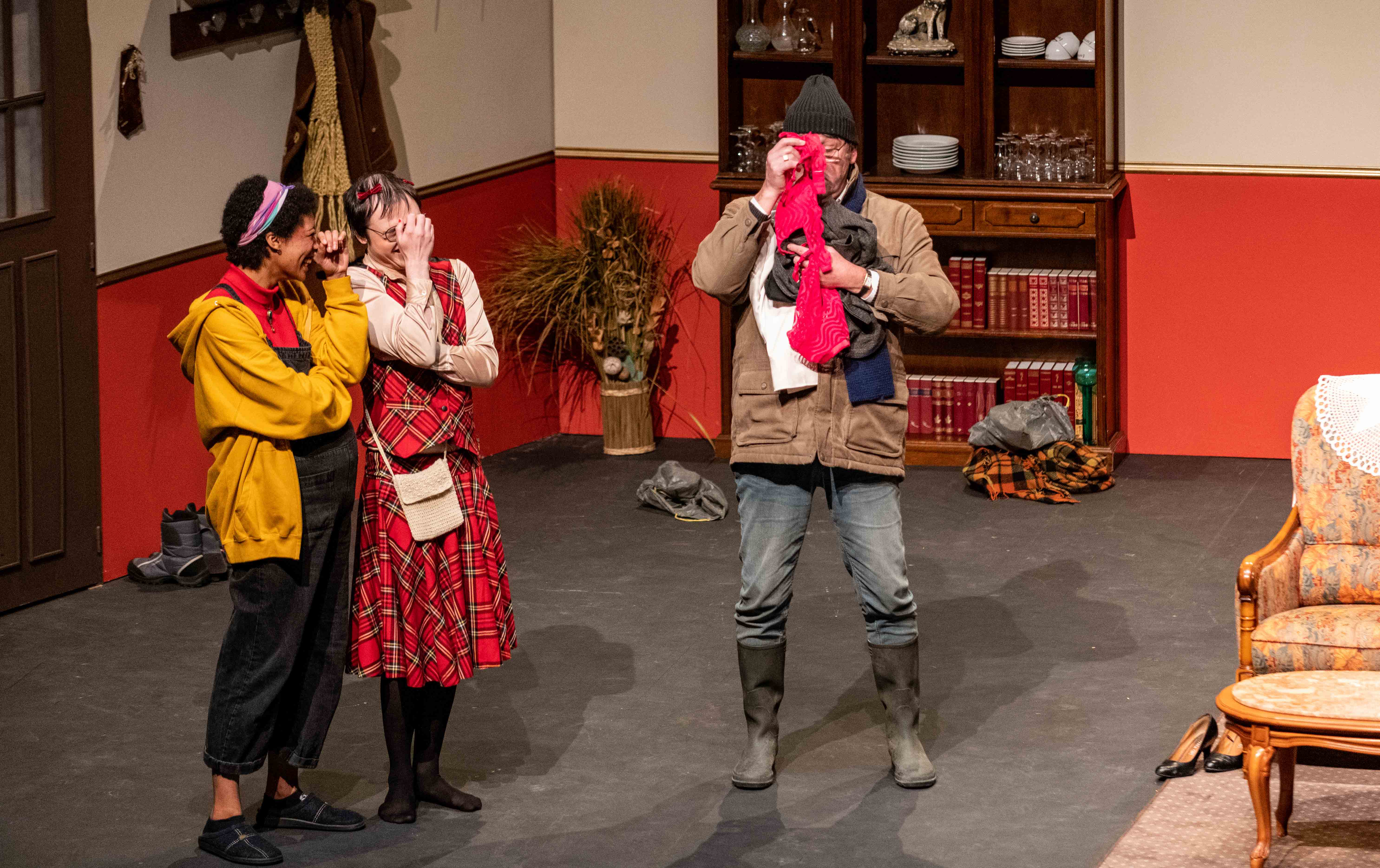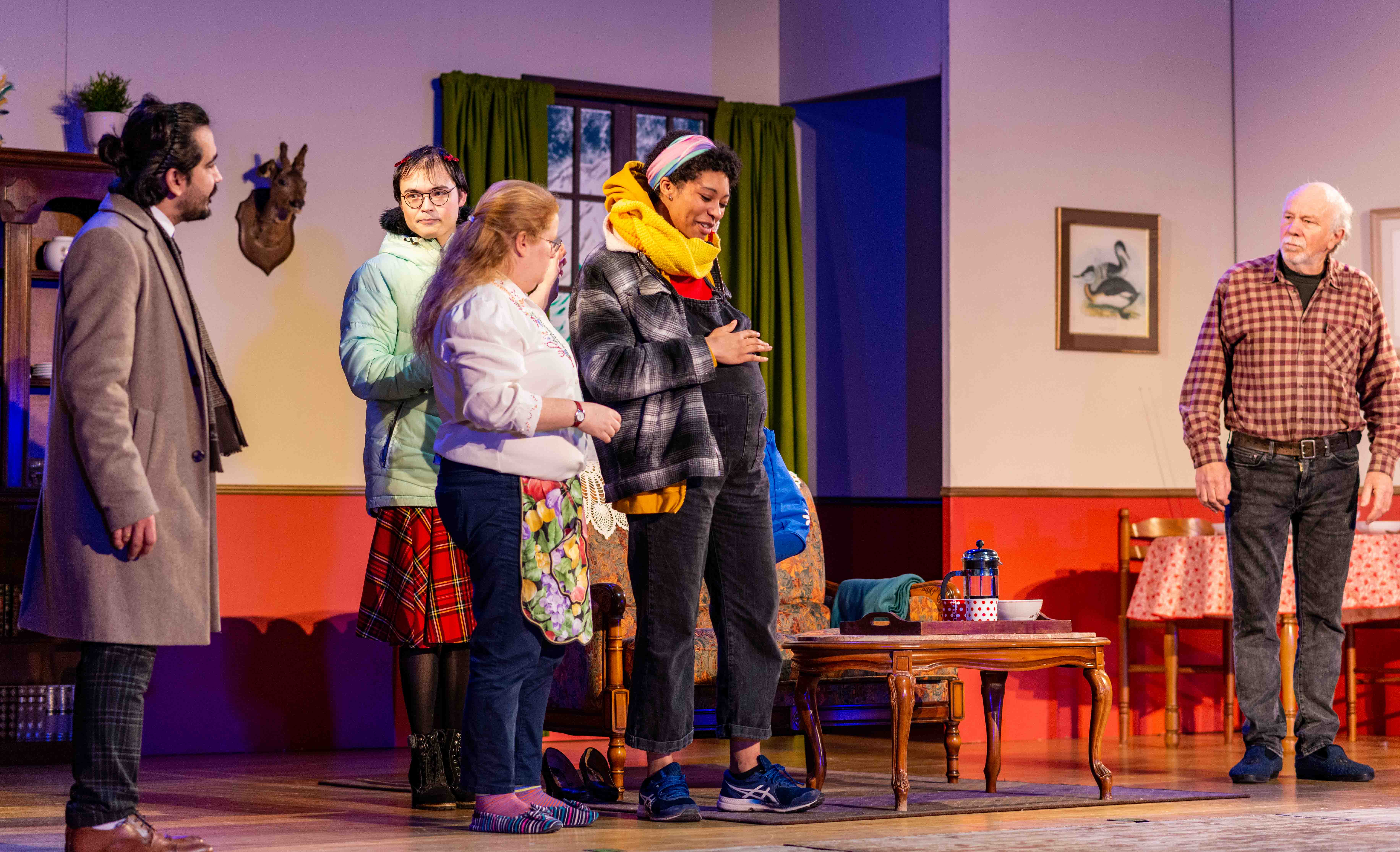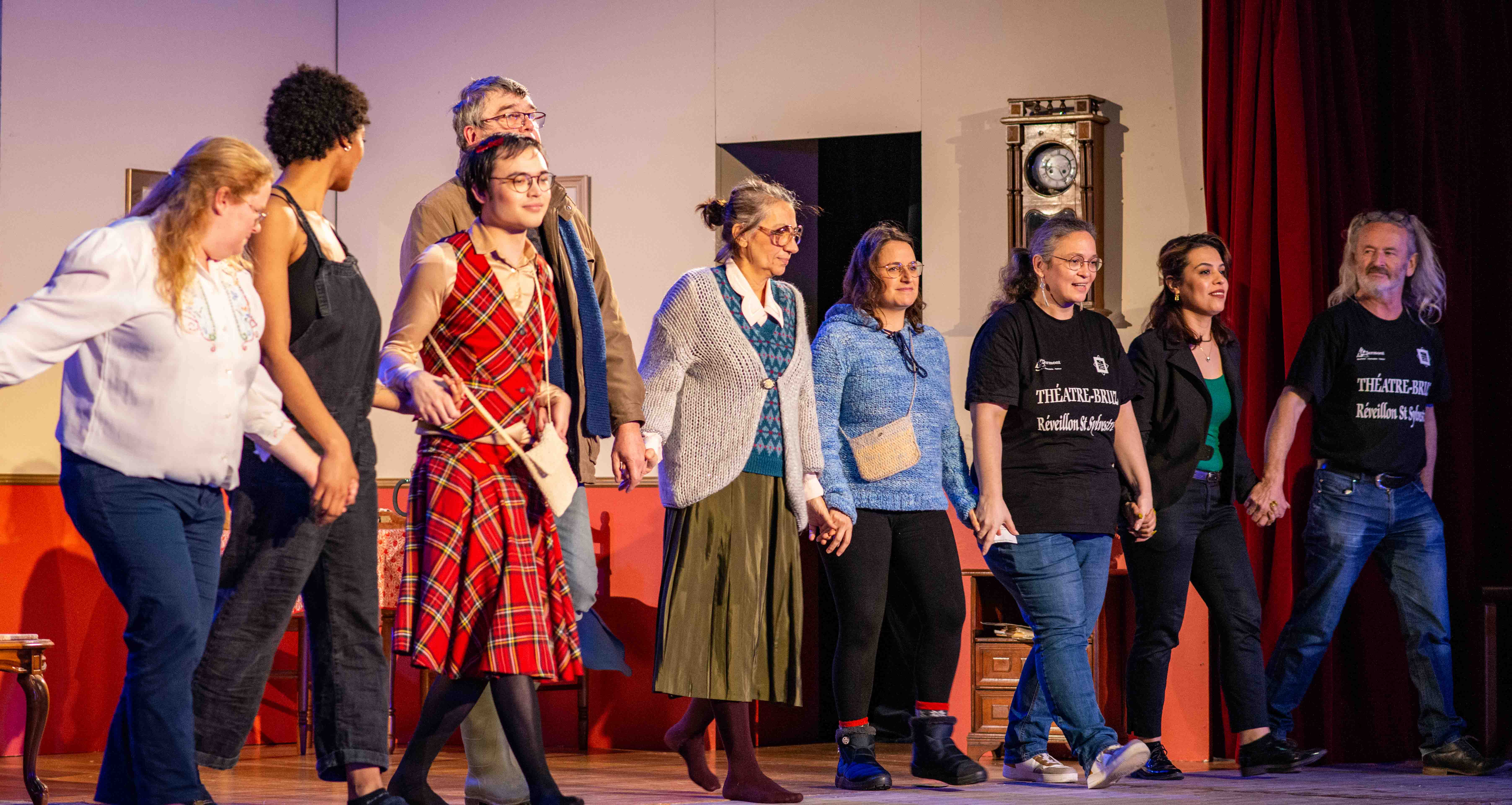 SUR SCÈNE : Corentin CHEA (Vanille), Nadia DE COSTIER (Cerise), Sandrine ETHORE (Paula de Grandpierre), Philippe GUILLARD (Michel), Marie LEBARGY (Sylvaine), Gwenn MARTIN-BUHET (Janine), Michel OLIVO (Emile Pouchard), Rawand PIROT (Benoît de Grandpierre) & Laëtitia SCHIFFMACHER (Solange).